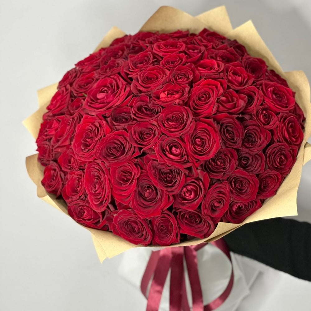 71 red roses in craft paper