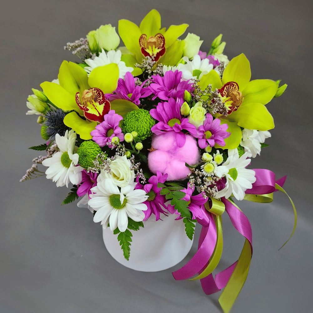 Assembled box with orchids