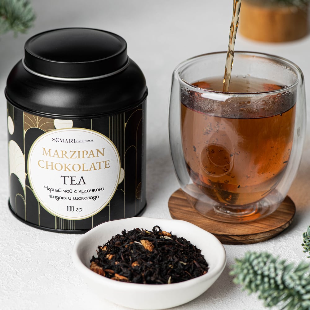 Black tea with chocolate and almonds