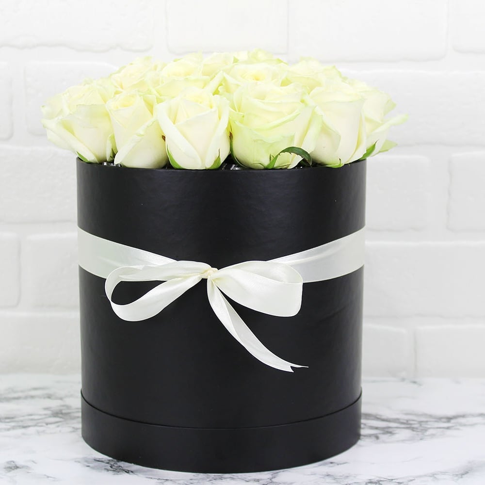 Bouquet of 19 white roses in a box