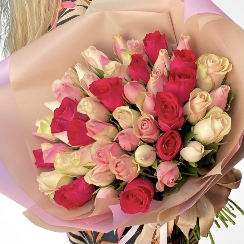 Bouquet of 51 pink and white roses 40 cm