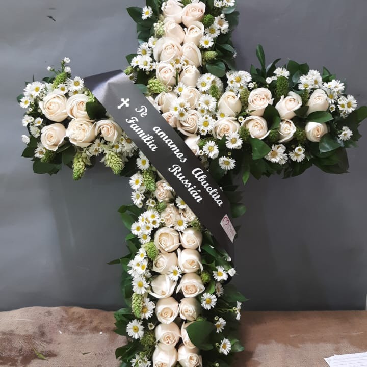 Cross of white roses