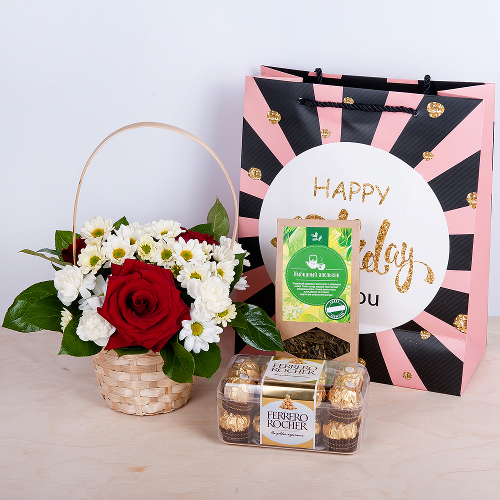Flower Basket, Sweets and Tea