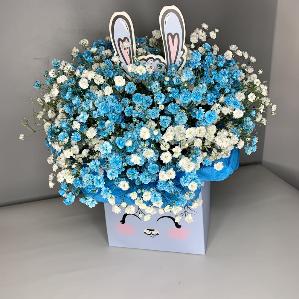 White-blue gypsophila in the box "Bunny"💙