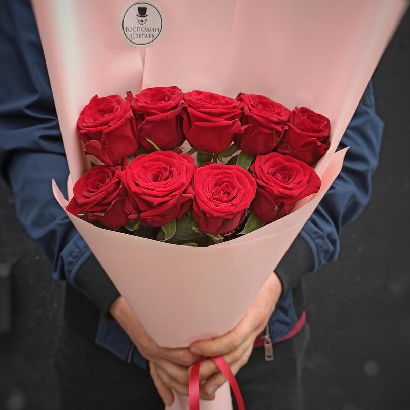 Mono bouquet of 9 red roses 50 cm