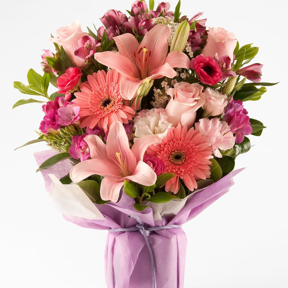 El Arreglo floral Suspiros a is a vibrant blend of lilies, gerberas, alstroemerias, roses, daisies, Saint Vicents and other seasonal flowers. Decorated with eucalyptus and limonium, this arrangemen...