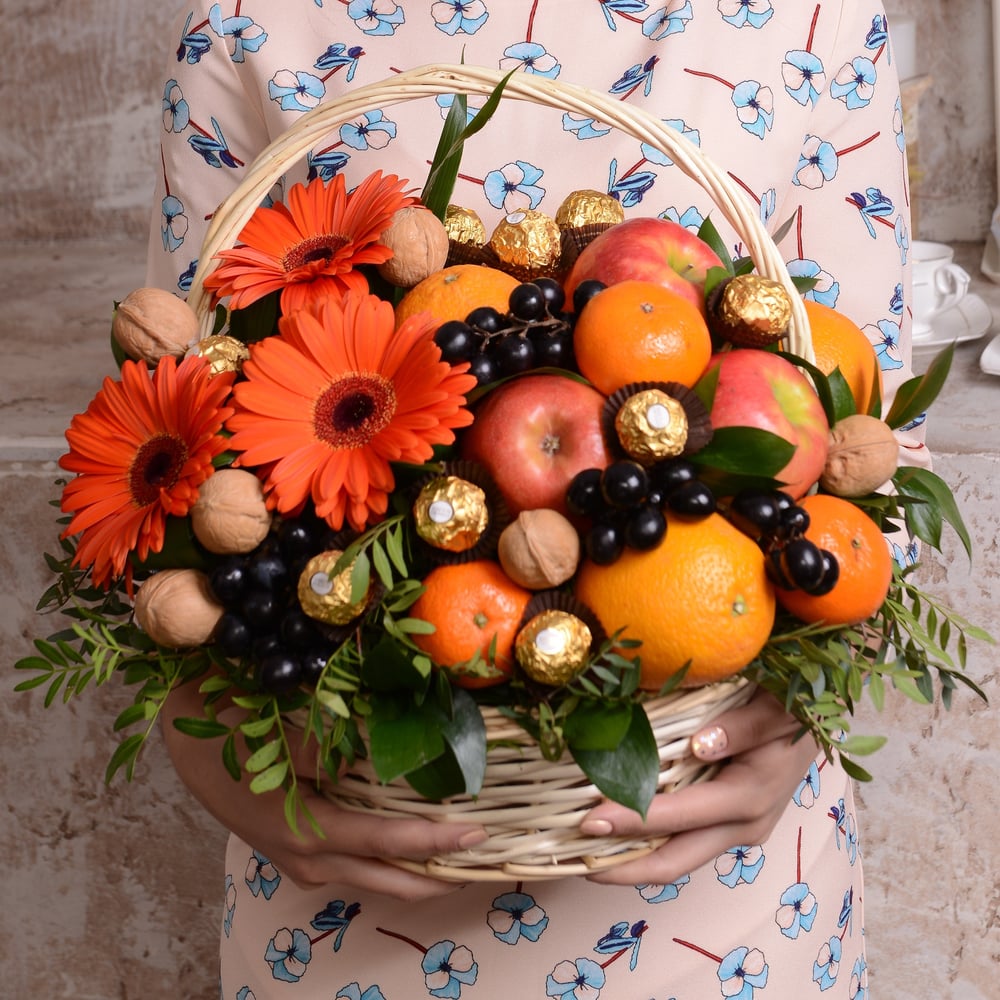 The "Thank You" basket is the perfect gift for that special someone. It contains the most beautiful and fragrant flowers, juicy fruits, and exquisite candies to express your gratitude and delight a loved one.