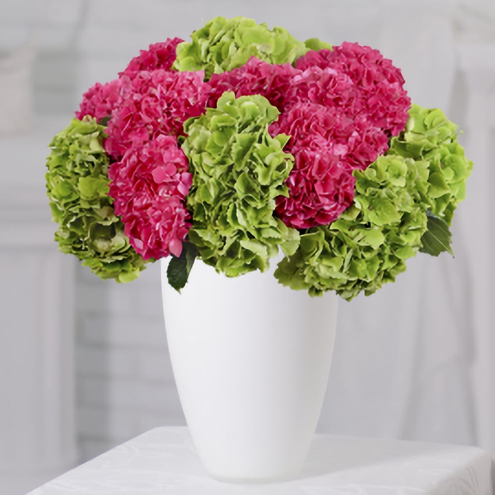 Just one look at this fluffy cloud of pink and green hydrangeas is enough to make the heart tremble with joy. The play of pink against green brings a playful beauty to this gorgeous bouquet. Send these charming flowers as a first bird of happy and long-awaited change.
