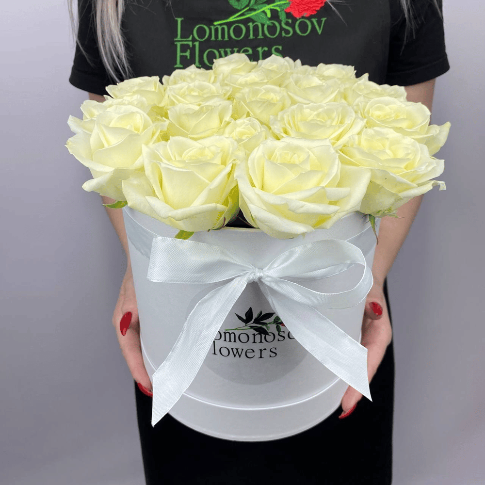 White roses in a hatbox